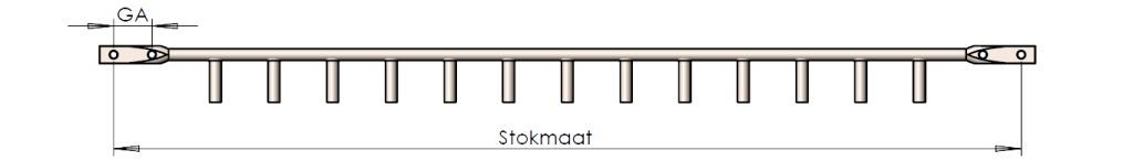 Voor het bepalen van de juiste breedte en samenstelling van de mazenstaaf is het belangrijk de juiste stokmaat en afmetingen te weten. De stokmaat is de afstand tussen de beide buitenste klinkgaten, H.O.H. gemeten. verder is het noodzakelijk, voor het bepalen van de penlengte, welke steek de zeefband heeft. verdere eigenschappen zoals de diameter en het aantal pennen alsmede de positie daarvan kunnen in overleg worden bepaald. Bij evt. bestelling van losse mazenstaven is het ook belangrijk de gatafstand te vermelden aan de uiteinden van de klinkstaaf. Zonder nadere vermelding is de afstand tussen de beide gaten aan de uiteinden 20mm, bij trekriembreedte 50mm. Bij trekriembreedtes 60mm of meer is dit 32mm. Op verzoek kan hiervan worden afgeweken. De gatafstanden kunnen dan respectievelijk 24 en 30mm worden.